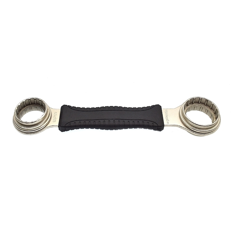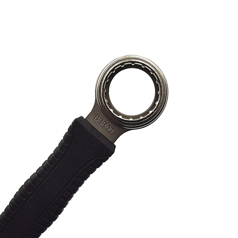 Cette clé en acier traité avec protection caoutchouc pour une bonne prise en main offre 4 tailles d’empreintes pour démonter et installer les boitiers de pédalier de type Shimano Hollowtech 2, BBR60, BB9000 et FSA Mega Evo