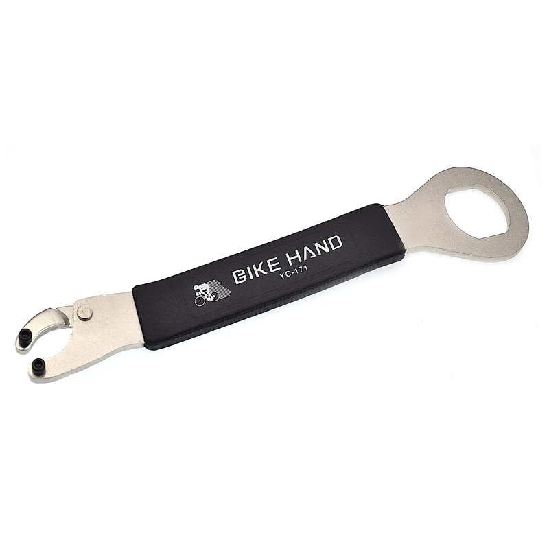 Clé pour 2 utilisations. Le côté avec les 2 ergots de la clé vous permettront de démonter ou remonter une roue libre. L’autre côté vous permettra de démonter les roulements d’un boitier de pédalier de 36 mm.