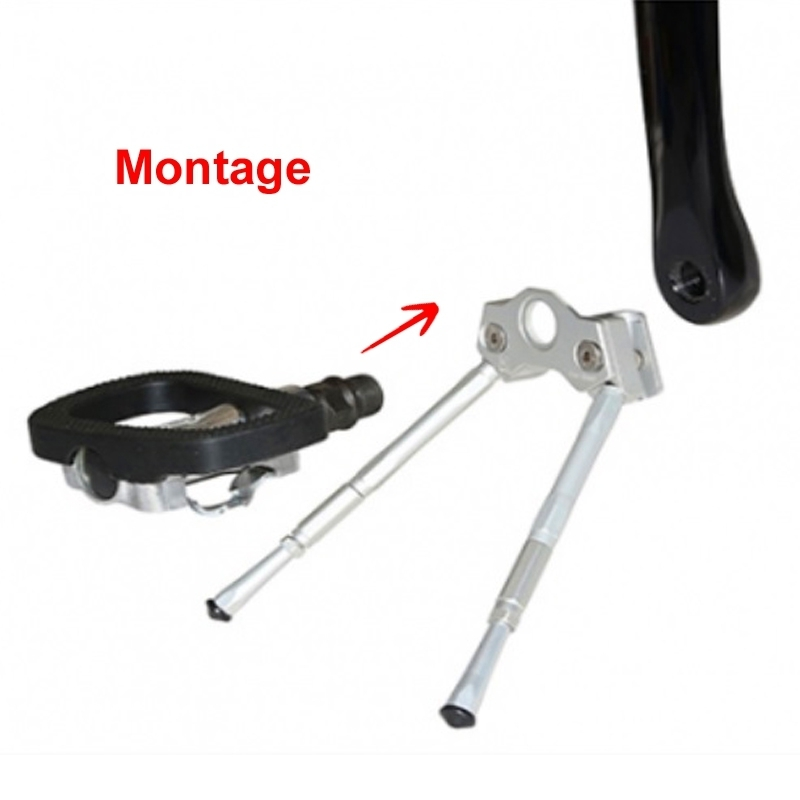 Son montage reste simple puisqu’il suffit d’insérer cette béquille entre la manivelle et la pédale en seulement quelques minutes et vous voila pourvu d’un pied de maintien stable, design et repliable en quelques secondes lorsque vous rejoignez les routes des villes et campagnes et les pistes cyclables.