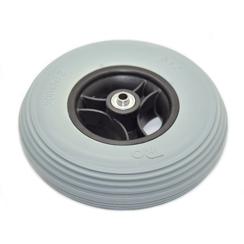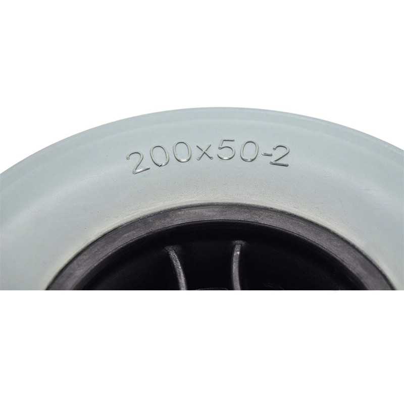 Roue pleine 200X50 – bandage gris – jante noire – pour axe 8 mm – moyeu largeur 60 mm – Charge utile 25 kg.
