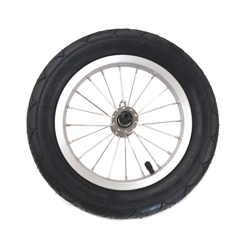 Cette roue est conçu pour être monté à l’avant sur certains modèles de remorques vélo enfant équipés d’un bras démontable afin de transformer la remorque en poussette.