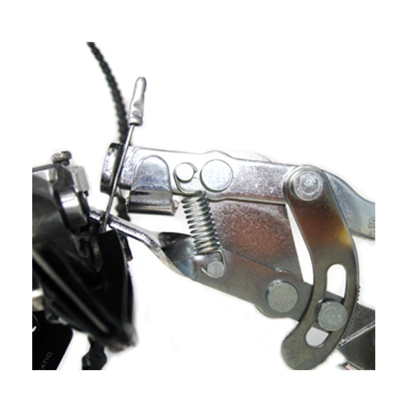 Cet outil est conçu pour maintenir avec une seul main les câbles de freins ou de dérailleur en position tendue en vous laissant le temps de fixer soigneusement vos câbles.