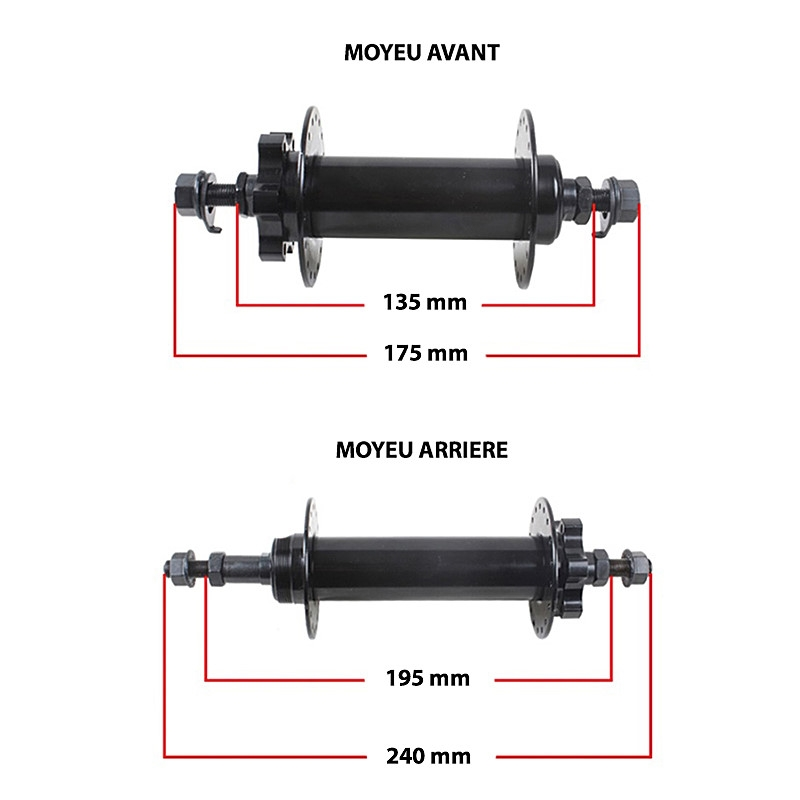 - Taille du moyeu arrière : 195 mm (longueur 240mm)